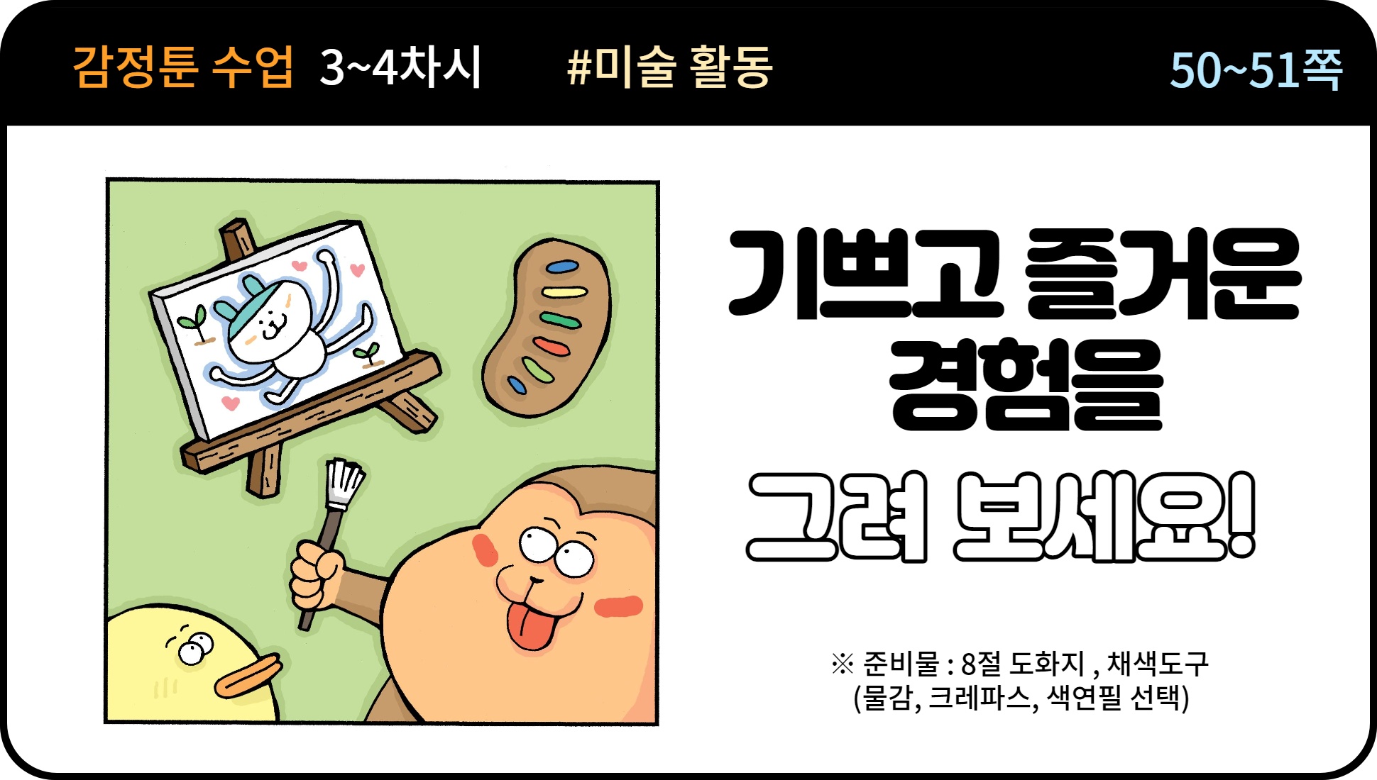 옥이샘의 감정툰 카드를 활용한 미술수업입니다. 예시1) 예시2) 활동지 자료 다운로드 ↓