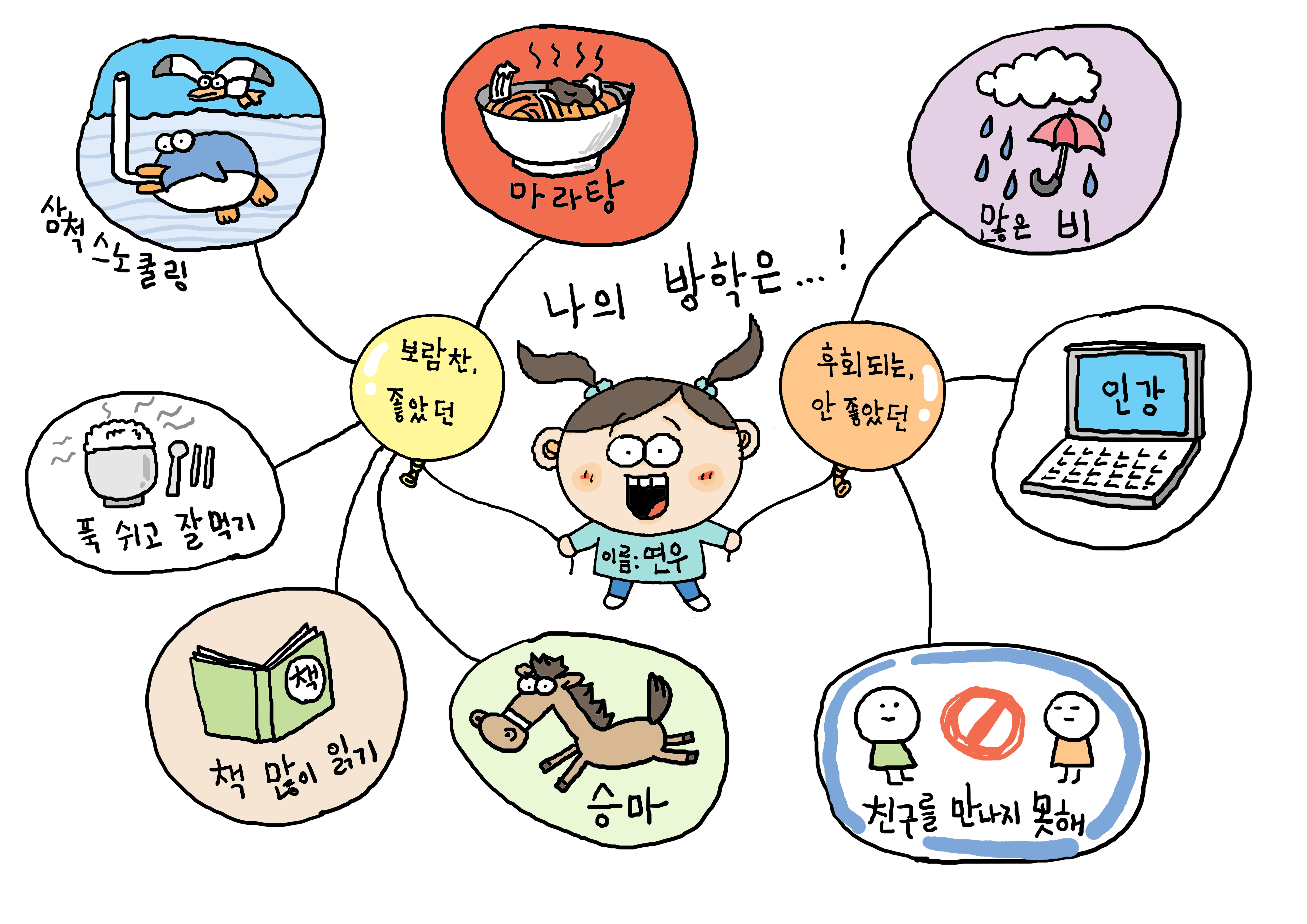 5. 모둠원 혹은 짝끼리 서로 보여주며 방학 이야기 나누기