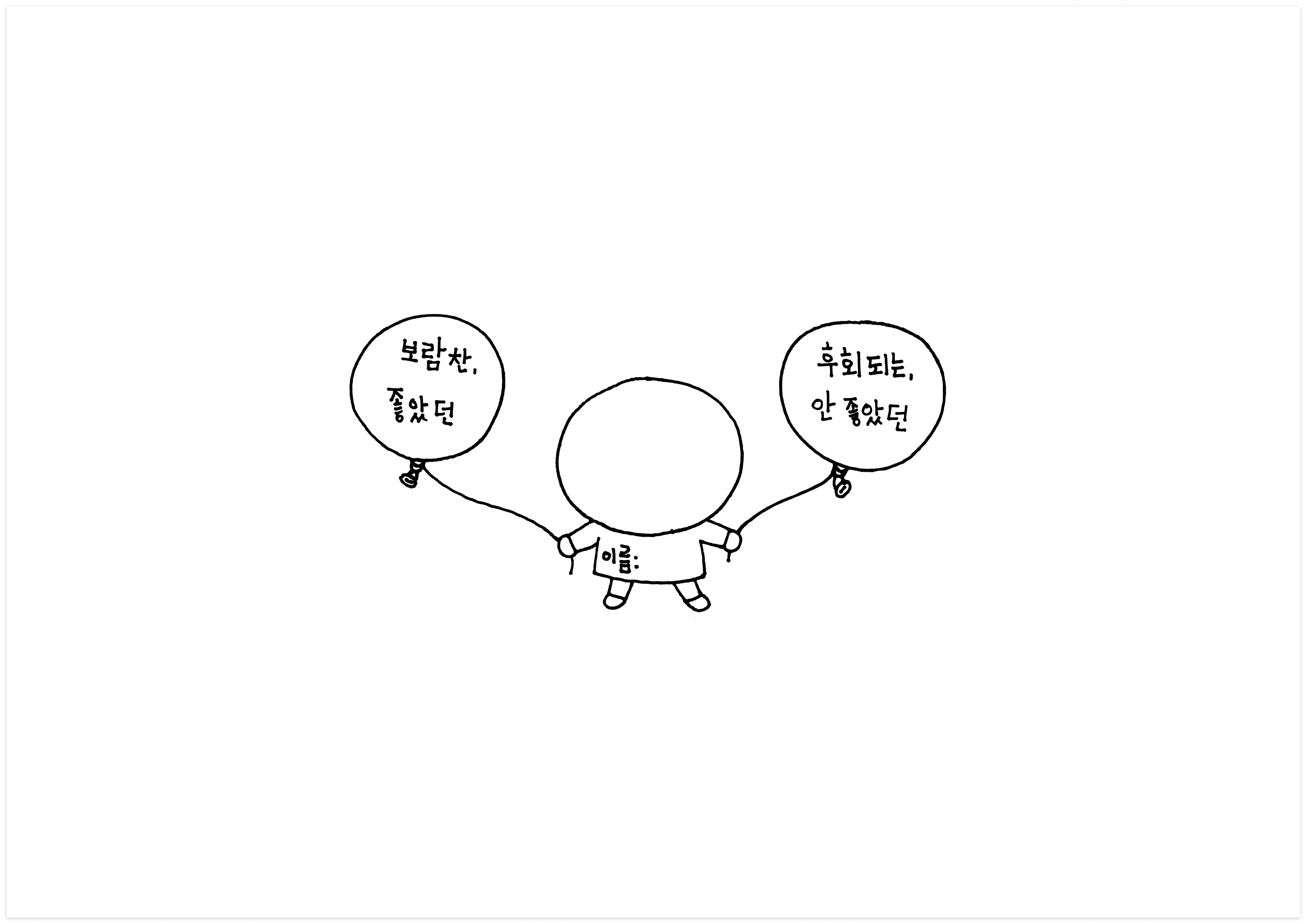 3. 오른쪽 풍선에는 후회되는 일, 안 좋았던 일,  슬펐던 일 등을 조각 그림으로 나타내기