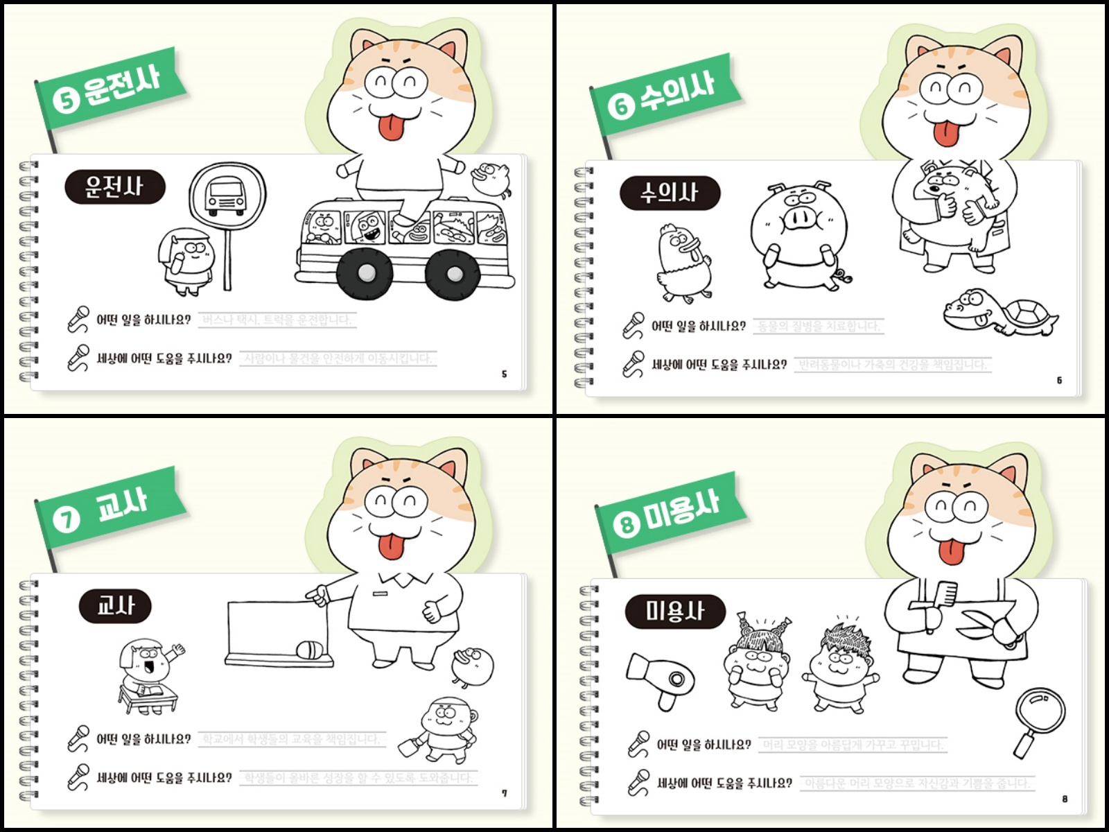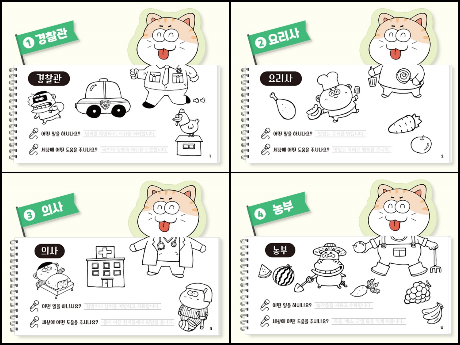 다양한 직업에 대한 정보와 일의 소중함을 알아보는 스토리 구성입니다.