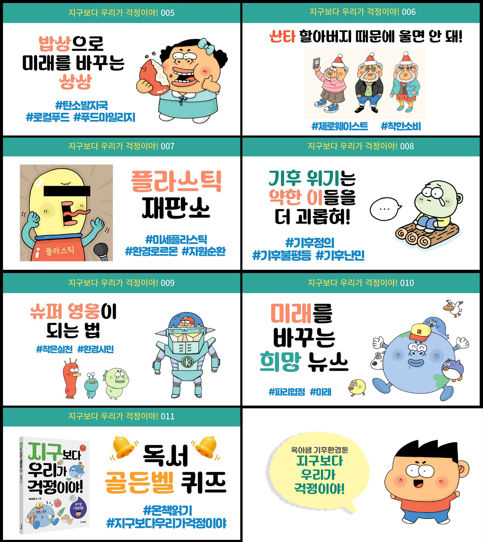 옥이샘 기후환경툰 책 <지구보다 우리가 걱정이야!> 가 학교와 가정에서 널리 읽혀지길 바랍니다.
