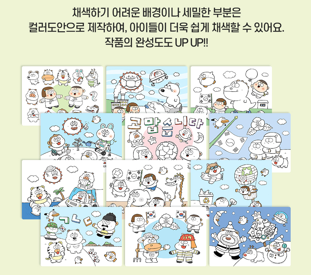 (2) 주 대상이 저, 중학년임을 고려하여 일부를 컬러 인쇄해서 채색을 수월하게 하고, 완성작의 퀄리티를 높였습니다.