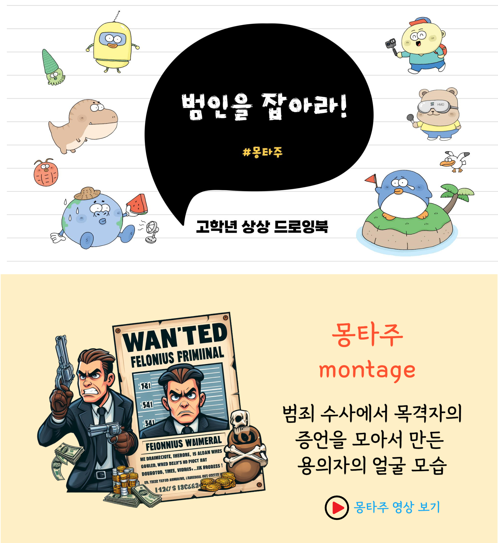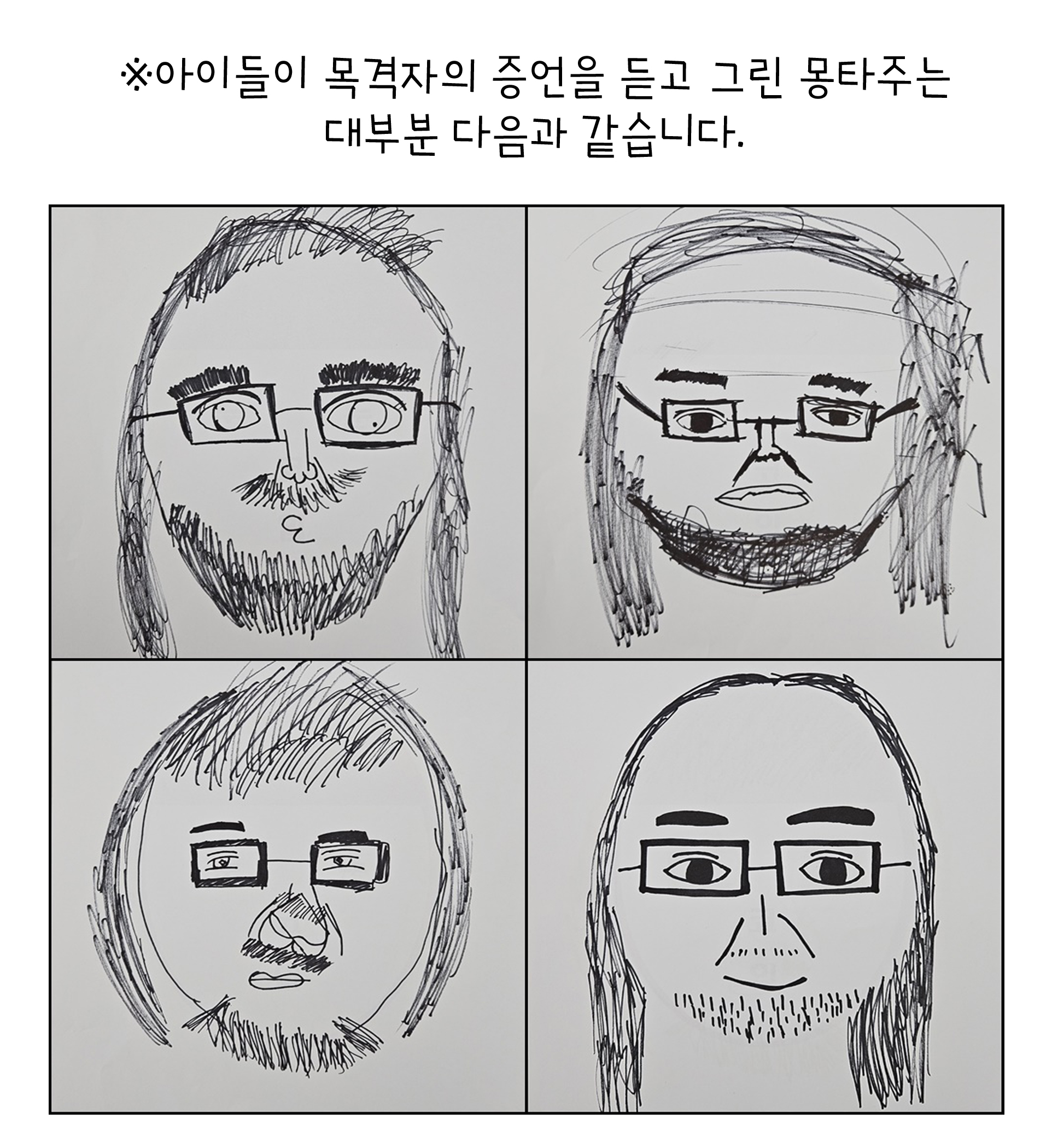 몽타주를 그려서 범인을 잡는 미술 놀이는 제가 초임 시절부터 즐겨 했던 활동입니다.