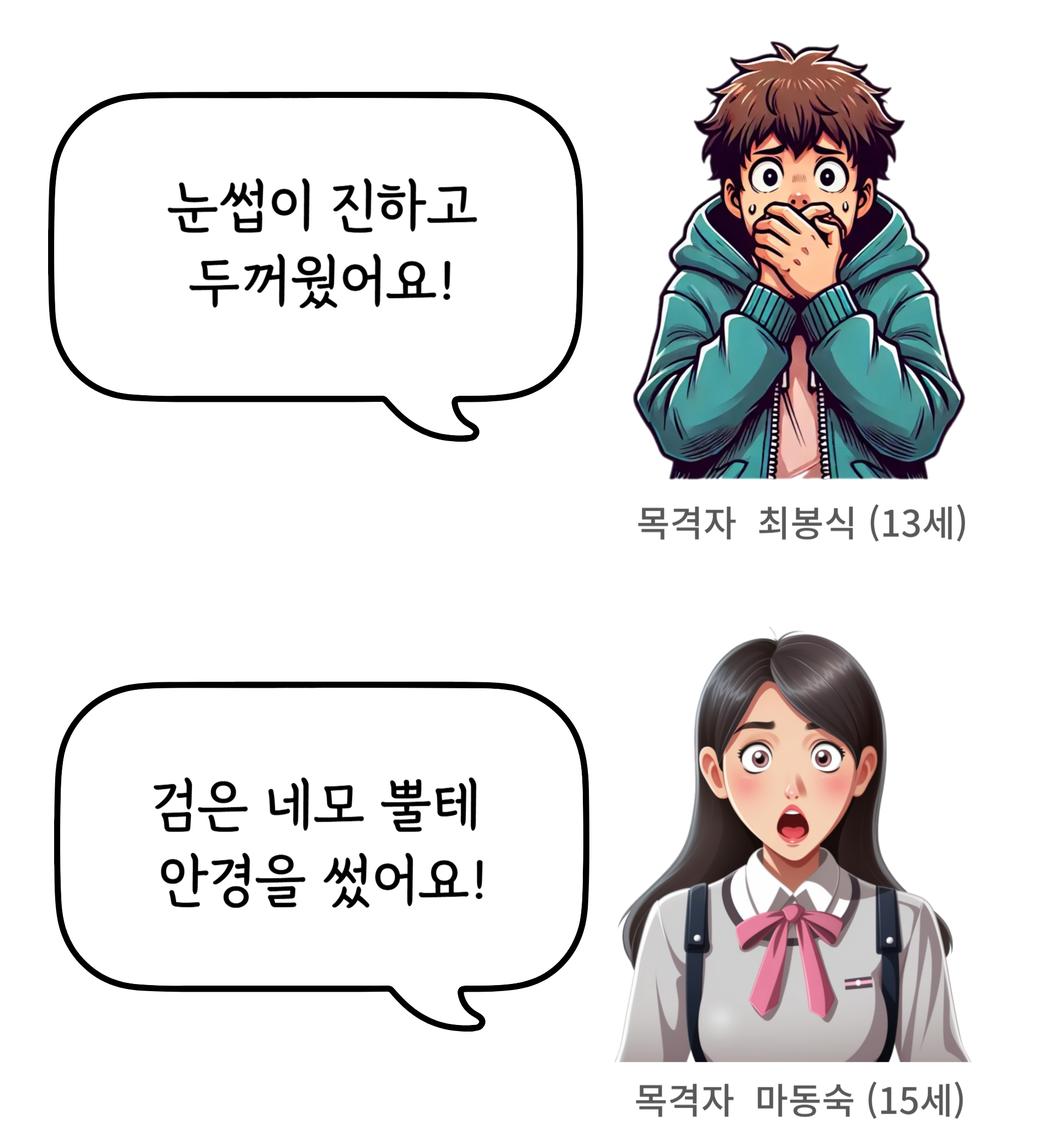 범죄 현장 근처에서 수상한 사람 세 명을 발견했습니다.
