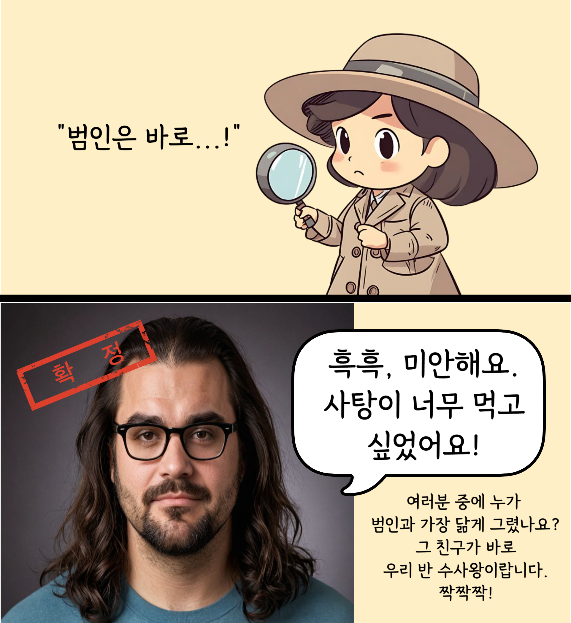 우리 반 아이들이 형사가 되어 범인을 잡는 것이지요.